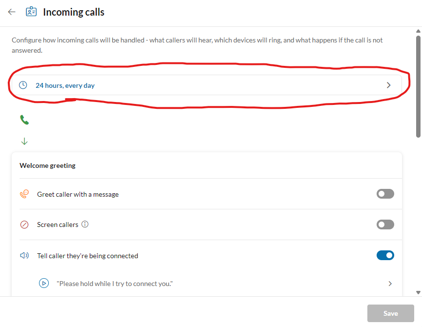 - Open the RingCentral app and navigate to Settings -> Phone -> Incoming Call Rules -> My Work Day -> Incoming Calls.